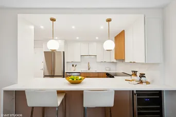 Absolutely stunning renovation from experienced condo renovation team BW Designs. Experience a completely updated layout and all new luxe finishes throughout this perfect floorplan PLUS an IN-UNIT Washer/ Dryer. Split bedrooms, transformed bath, and an open kitchen and spacious living room. Beautiful bespoke details including black and gold knurled door hardware, high end quartz selections, all Elfa custom closets, and single panel solid core doors. Kitchen features: stunning quartz full height backsplash, built-in microwave, beverage center, roll out trash/ recycling,and tons of storage; custom slatted hood, and contrasting slim shaker white and white oak cabinetry. Primary bath features striking black and white finishes, walk-in shower w/ custom glass enclosure, and wall to wall niche and bench in a black Caeserstone quartz. Large balcony off living room, perfect for coffee/ wine sipping or grilling. Located in Sandburg Village's most coveted building: James House! Great access to the lake, LSD, CTA, Michigan Ave, the Loop and all the best of the Gold Coast and Old Town!